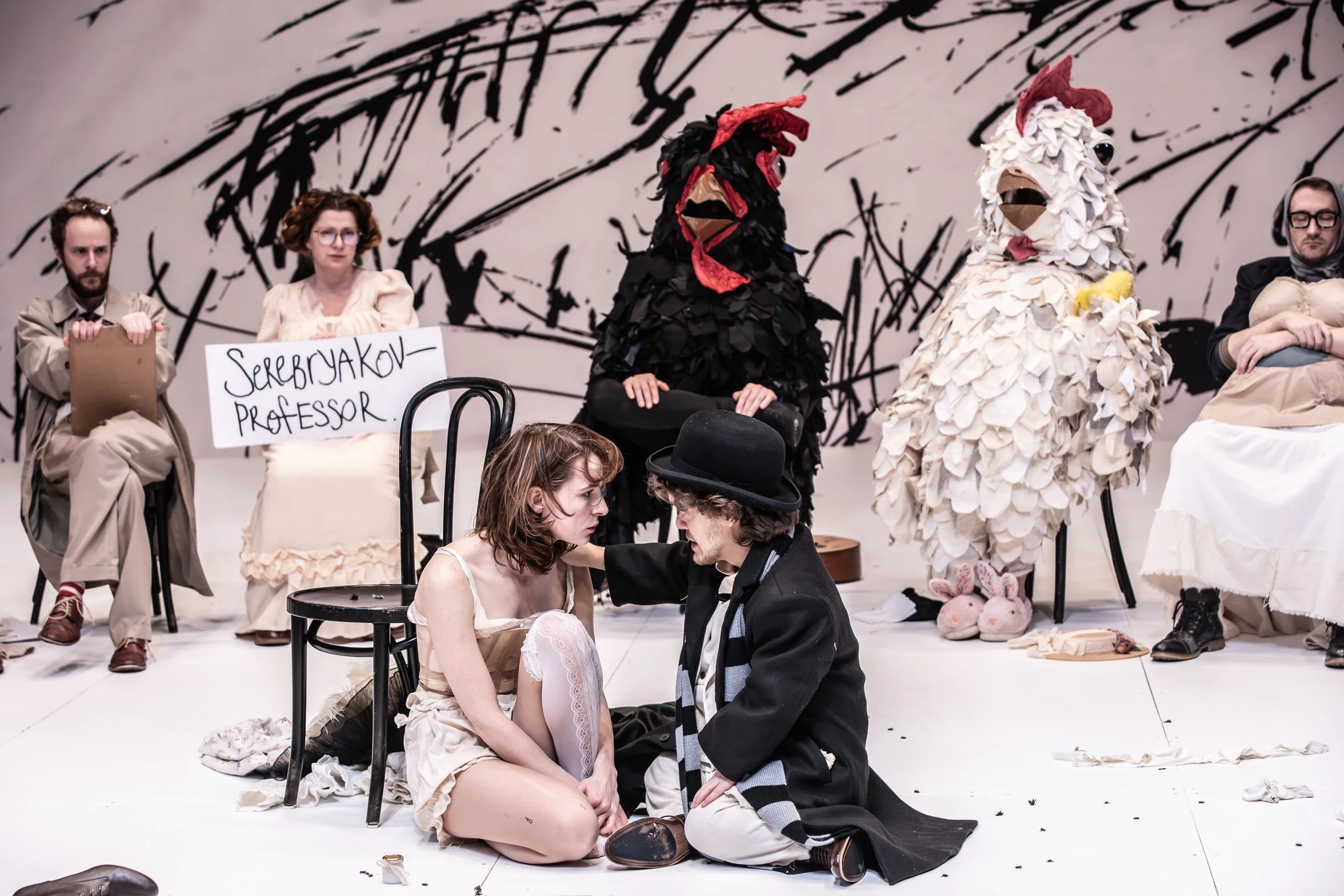 But now — as our own world burns with despair, longing, and betrayal — it is time for the Lab to take up Chekhov’s masterpiece, transforming it into a grotesque elegy, a wasteland vaudeville.